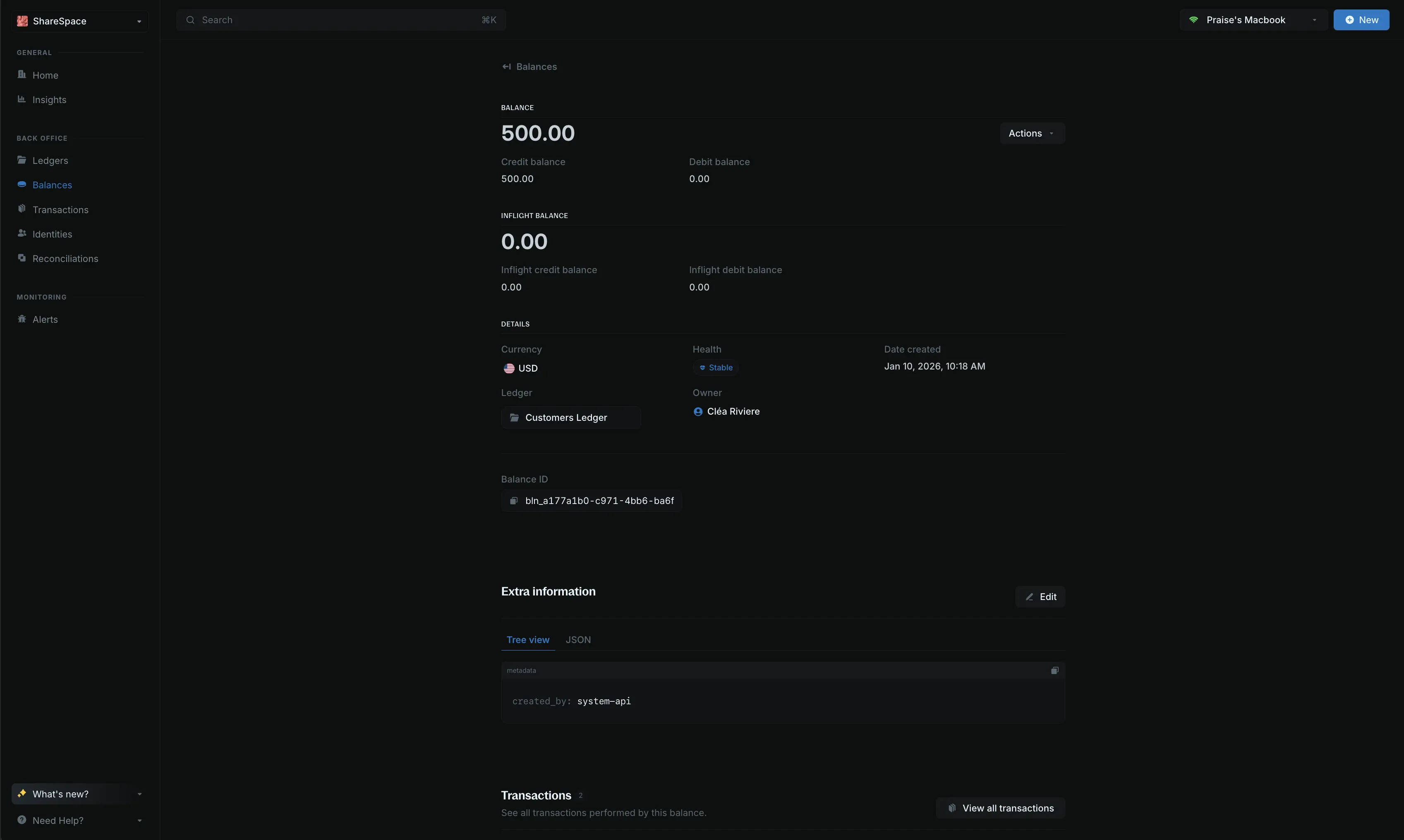 We’ll create another transaction, but we’ll specify that we want it to be inflight. This tells the ledger that a transaction has happened but it shouldn’t be finalized yet.