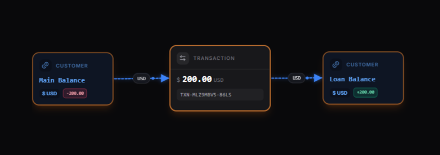 To record a repayment, we’ll simply move money from their main balance back to their loan balance to reduce the debt.
